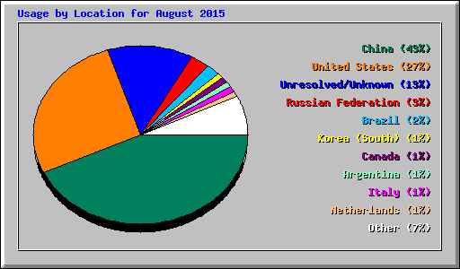 | 6 | 27 | 0.38% | 27 | 0.61% | 878 | 1.26% | 0 | 0.00% | 0 | 0.00% | 1 | 0.02% | 54.205.120.55 |